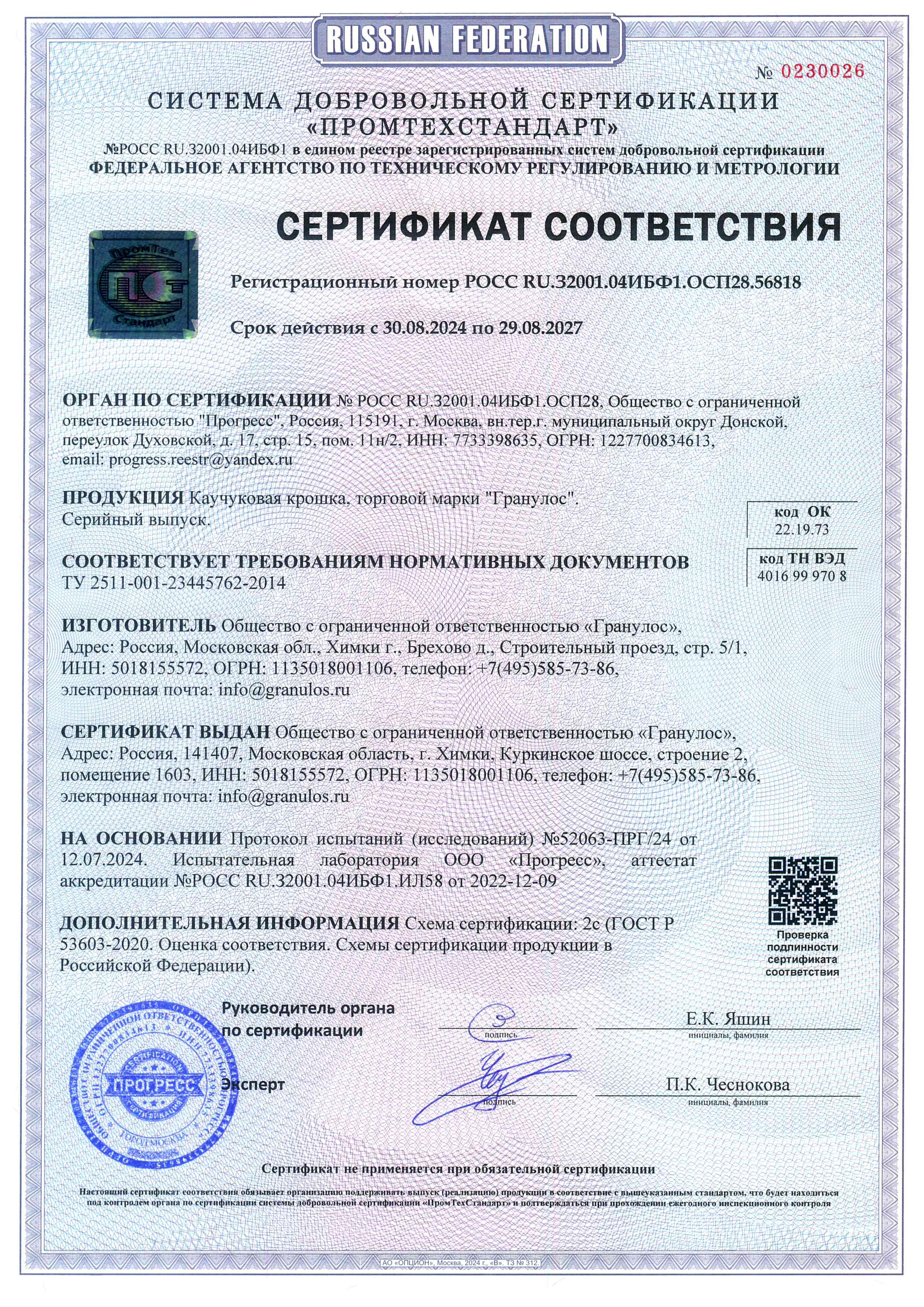 Гранулят из синтетического каучука. Входит в состав бесшовных покрытий на детских и спортивных площадках. Безопасный для здоровья человека материал. Сохраняет яркость цвета на протяжении всего срока эксплуатации — не менее 10—15 лет.