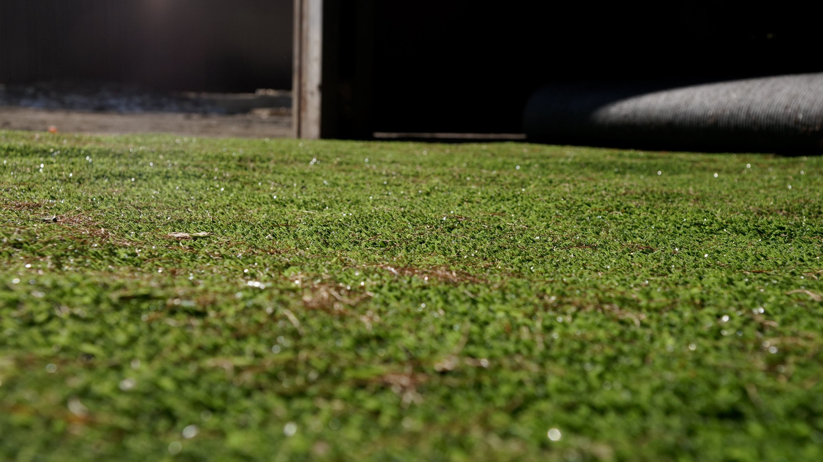 Монофиламентная искусственная трава. Длина ворса — 40 мм. Сделана в виде рулонов — 4x40 м. Материал предназначен для обустройства футбольных полей и детских игровых площадок. Не подходит для ландшафтного дизайна.