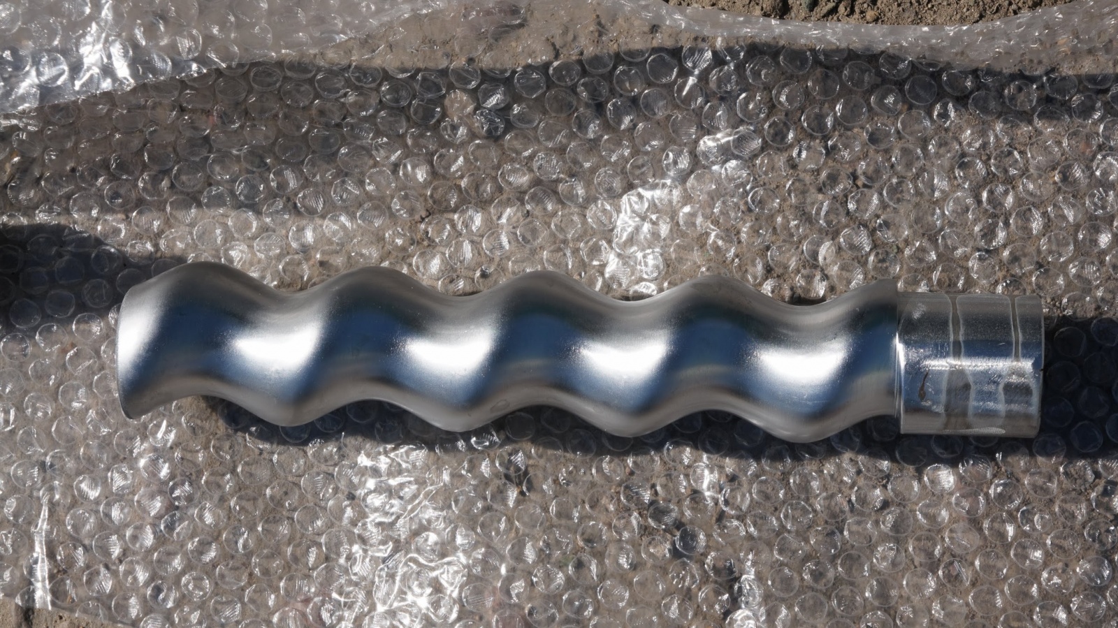 Запасная часть для спрей-машины PTJ-120. Представляет собой резиновый трубчатый элемент с винтовой нарезкой внутри, который одевается на шнек узла подачи резиновой смеси. В процессе работы спрей-машины шнек совершает вращательные движения, в результате чего, проталкиваемая шнеком смесь, удерживается в рамках резинового кожуха и подается в узел распыления.